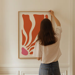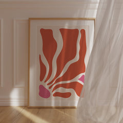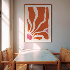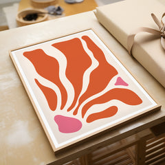Transform your space with this captivating abstract art print, featuring flowing orange shapes with vibrant pink accents on a neutral background. This modern minimalist design adds a touch of sophistication and energy to any room. Printed on 250 gsm museum-quality paper with top-branded inks, this art print ensures longevity and vibrant colors. Choose from premium sustainable wooden frames available in natural, black, or white finishes to perfectly match your decor. Ideal for living rooms,...