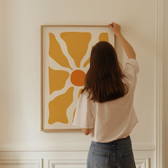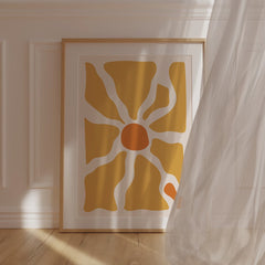 Elevate your space with the vibrant energy of our Abstract Sunburst art print. This striking piece features bold geometric shapes in warm hues of orange and yellow, radiating from a central point. Its minimalist design brings a modern touch to any room, creating a lively yet sophisticated ambiance. Each print is meticulously crafted on 250 gsm museum-quality paper using top-branded inks, ensuring maximum color vibrancy and longevity. Available in sustainable wooden frames in natural, black...
