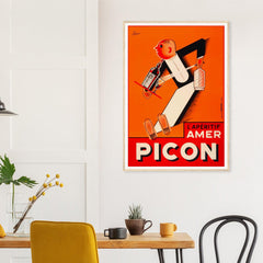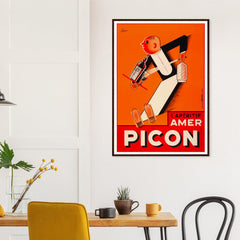 Wir stellen Ihnen das Amer Picon Waiter Vintage-Werbeplakat vor, eine entzückende Ergänzung für Ihr Zuhause oder Büro. Mit der bezaubernden Darstellung eines Kellners, der den legendären französischen Aperitif Amer Picon serviert, verleiht dieses Vintage-Poster jedem Raum einen Hauch von Nostalgie und Eleganz.