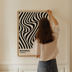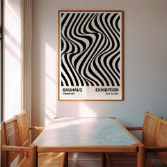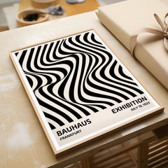 Celebrate the revolutionary design movement with this Bauhaus Exhibition Poster art print from 1923. This captivating black and white design showcases the bold, geometric patterns that are an integral part of the Bauhaus aesthetic. This visually striking optical art piece is a testament to the innovative and avant-garde spirit of the era. Perfect for adding a touch of historical sophistication to your living room or office decor, this print is produced on 250 gsm museum-quality paper using...