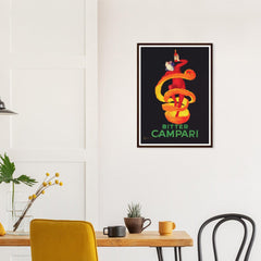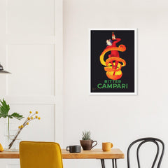 Mit seinen leuchtenden Farben und dem auffälligen Design ist dieses Campari-Poster ein echter Hingucker und weckt ein Gefühl der Nostalgie für das goldene Zeitalter der Werbung. Das eindrucksvolle Bild einer Person, die eine Flasche Bitter C...