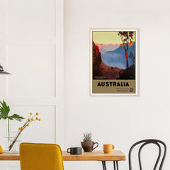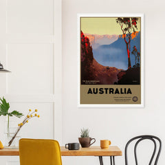 Unsere australischen Vintage-Reiseplakate zeigen die Blue Mountains in ihrer ganzen Pracht. Mit satten, gedämpften Farben und aufwendigen Details verleihen diese Kunstwerke jedem Raum einen Hauch von No...