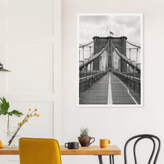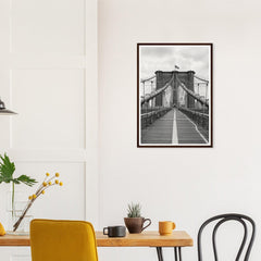 Handcrafted with meticulous attention to detail, this fine art photograph showcases the grandeur and architectural prowess of the Brooklyn Bridge. The monochromatic black and white tones add a touch of elegance and sophistication to any space.