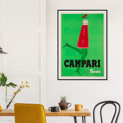 Looking to enhance your space with a touch of vintage charm? Check out this eye-catching Campari Poster. With its vibrant red bottle sprinting across the design, complemented by green legs, this vintage advertising poster is sure to grab attention and spark conversation.