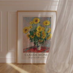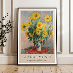 Experience the vibrant beauty of Claude Monet's 'Bouquet of Sunflowers' (1881). This stunning art print showcases the lush, radiant sunflowers in full bloom, capturing the essence of Monet's impressionist style with delicate brush strokes and a vivid palette. The intricate details bring to life the brilliant yellows and lush greens, set against a subtly textured background. Printed on 250 gsm museum-quality paper with top-branded inks, this high-quality reproduction maintains the integrity...
