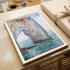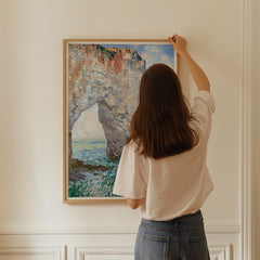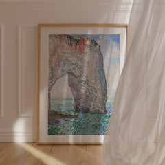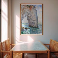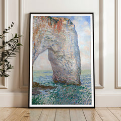 Experience the breathtaking majesty of Claude Monet's 'Cliff at Étretat', an exquisite representation of Impressionist seascape art. This art print captures the mesmerizing beauty of the famous cliffs of Étretat, France, with Monet's signature brushstrokes and vibrant colors. Allow yourself to be transported to the serene coastal setting, where the imposing cliff meets the gentle waves of the ocean.