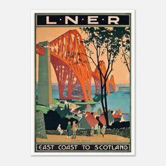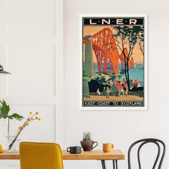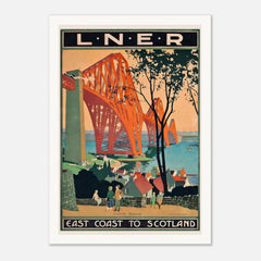 Entführen Sie sich in die bezaubernden Landschaften Schottlands mit unserem faszinierenden Vintage-Reiseposter Forth Bridge East Coast to Scotland. Dieser exquisite Druck ist ein zeitloses Meisterwerk, das die Schönheit und den Charme der Ostküste feiert und ihre atemberaubende Landschaft in all ihrer Pracht einfängt.
