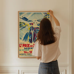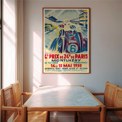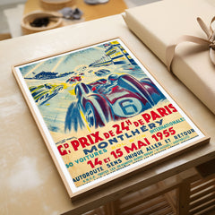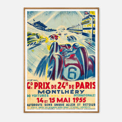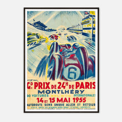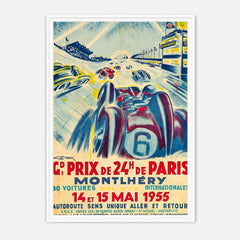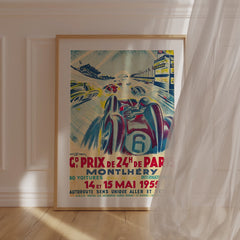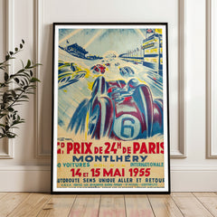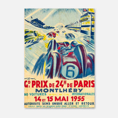 Experience the thrill and excitement of the Grand Prix de 24H de Paris, held in 1955, with this striking vintage racing poster by renowned artist Geo Ham. This dynamic artwork showcases the intensity and speed of the legendary race, featuring colorful race cars zooming around the Montlhéry circuit under dramatic sky illumination. Perfectly preserved through high-quality reproduction on 250 gsm museum-quality paper, this print utilizes top-branded inks to maintain the original’s vibrant col...