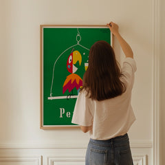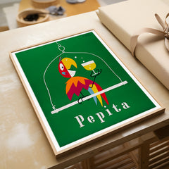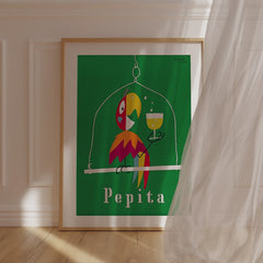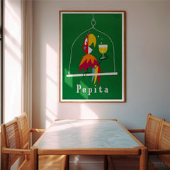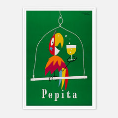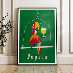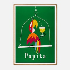 Add a burst of color and charm to your space with this vibrant vintage poster by Herbert Leupin. Featuring the playful Pepita parrot holding a glass of champagne against a rich green background, this iconic artwork captures the essence of mid-century advertising elegance. Expertly reproduced on 250 gsm museum-quality paper using top-branded inks, this art print ensures exceptional clarity and color. Choose from our premium sustainable wooden frames in natural, black, or white finishes to p...