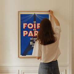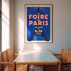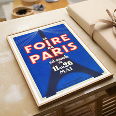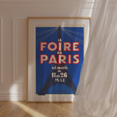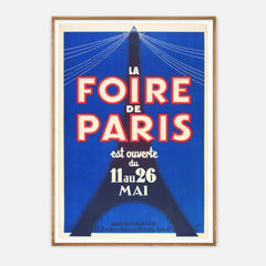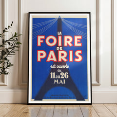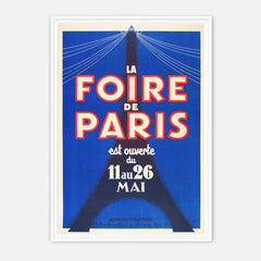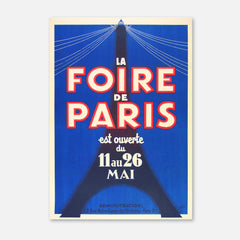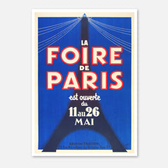 Celebrate the charm and allure of La Foire de Paris with this stunning vintage poster. Featuring bold typography and the iconic Eiffel Tower, this vintage advertisement captures the excitement and grandeur of one of Paris's most renowned events. The vibrant blue background, contrasted with red and white lettering, adds a touch of French elegance to any space. This high-quality art print is meticulously reproduced on 250 gsm museum-quality paper using top-branded inks, ensuring lasting bril...