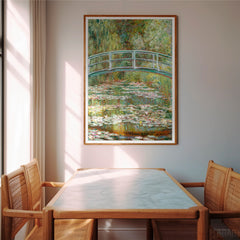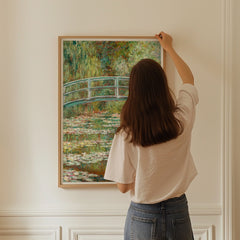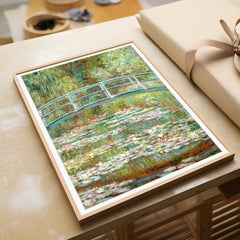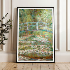 Experience the serene beauty of Claude Monet's iconic painting, The Japanese Bridge. This art print captures the tranquil setting of Monet's garden in Giverny, featuring the famous Japanese bridge arching over a pond adorned with shimmering water lilies. The soft, impressionistic brushstrokes and rich, verdant hues create a peaceful ambiance, perfect for any room in your home. Printed on 250 gsm museum-quality paper with top-branded inks, this reproduction maintains the original artwork's ...