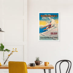 Werten Sie Ihre Inneneinrichtung mit dem Vintage-Charme des Vintage-Ski-Posters auf. Dieses atemberaubende Stück fängt die Essenz der goldenen Ära des Skifahrens ein und versetzt Sie in eine nostalgische Welt voller verschneiter Pisten und adrenalingeladener Abenteuer.
