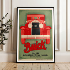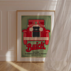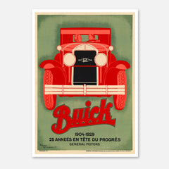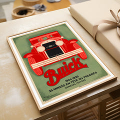 Celebrate the golden age of automotive advertising with this exquisite art print of René Vincent's iconic Buick poster from 1929. This vintage masterpiece captures the elegance and sophistication of the classic Buick automobile in bold red and green hues. The art print features two passengers enjoying a drive, symbolizing the luxury and progress associated with Buick during this era. Printed on 250 gsm museum-quality paper with top-branded inks and paired with premium sustainable wooden fr...