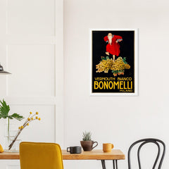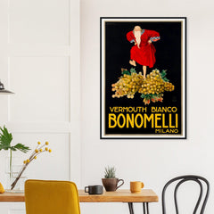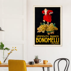 Mit einem lebendigen und auffälligen Design präsentiert dieses Poster die ikonische Marke Bonomelli und ihren berühmten Vermouth Bianco. Die kräftigen Farben und der Vintage...