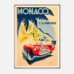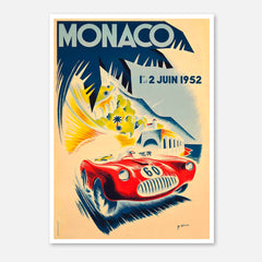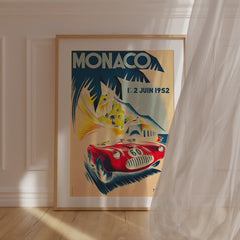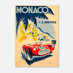 Celebrate the thrill of the Monaco Grand Prix with this captivating vintage poster from 1952, created by the talented artist Bernard Minne. This art print features a dynamic red racing car speeding down the iconic streets of Monaco, against a vibrant, retro backdrop. Perfect for motorsport enthusiasts and lovers of vintage art, this print is a slice of racing history and an homage to the glamour of Monaco. Our high-quality art print is reproduced on 250 gsm museum-quality paper using top-b...