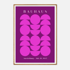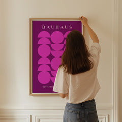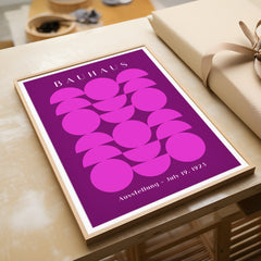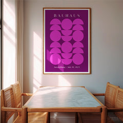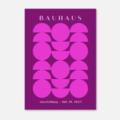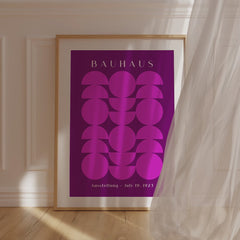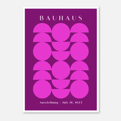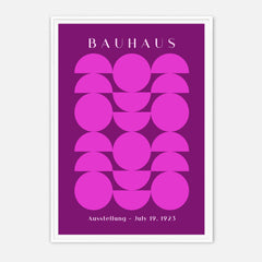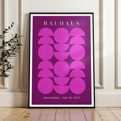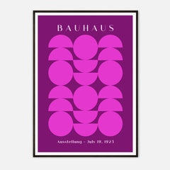 Celebrate the innovative design and modernist aesthetic of the Bauhaus movement with this striking geometric abstract art print. Featuring a dynamic arrangement of pink circles and half-circles against a deep purple background, this poster captures the essence of Bauhaus-style minimalism and abstraction. Perfect for adding a touch of sophistication to any contemporary space, this high-quality art print is reproduced on 250 gsm museum-quality paper using top-branded inks to ensure vibrant c...