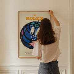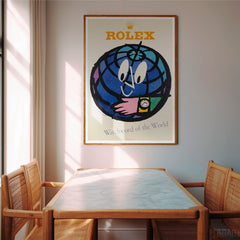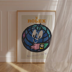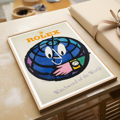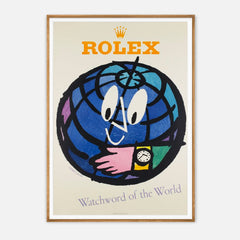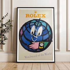 This vintage art print by Herbert Leupin, titled 'Rolex Watchword of the World', is a charming and iconic piece of advertising history. The artwork features a playful depiction of a globe with a smiling face, adorned with a classic Rolex watch, and bold, vibrant colors that capture the essence of mid-century design. Perfect for adding a touch of nostalgia and sophistication to your space, this print is ideal for the living room or office. Our high-quality reproduction is printed on 250 gsm...