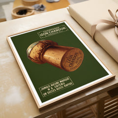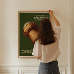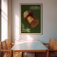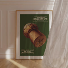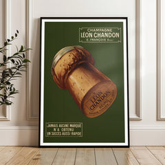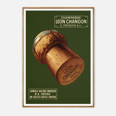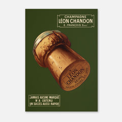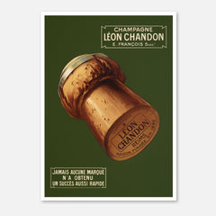 Step back in time with this charming vintage advertising art print featuring Léon Chandon Champagne. This classic French poster showcases a beautifully detailed champagne cork against a rich green background, evoking a sense of elegance and celebration. The text highlights the swift success of the brand, adding historical value to the piece. Printed on 250 gsm museum-quality paper with top-branded inks, this art print guarantees longevity and vibrancy. Choose from our premium sustainable w...