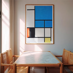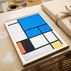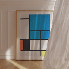 Bring home the elegance and simplicity of Piet Mondrian's iconic work, Composition with Blue, Black, and Yellow. This captivating art print showcases Mondrian's masterful use of geometric shapes and primary colors, creating a harmonious balance that is both timeless and modern. Reproduced on 250 gsm museum-quality paper with top-branded inks, this art print preserves the bold lines and vibrant hues of the original masterpiece. Available in premium sustainable wooden frames in natural, blac...