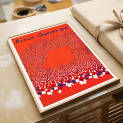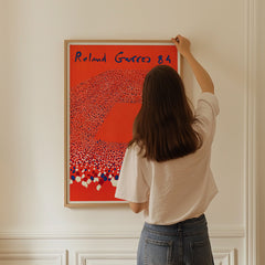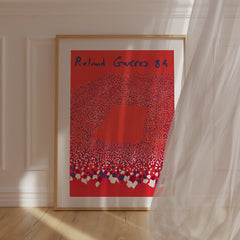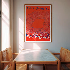 Celebrate the vibrant energy of the famous Roland Garros tennis tournament with this striking 1984 poster. The abstract design captures the dynamic atmosphere of the stadium with a sea of red, blue, and white dots, symbolizing the lively crowd and the iconic clay courts. This high-quality art print is produced on 250 gsm museum-quality paper using top-branded inks, ensuring the colors remain vivid and true to the original artwork. Our premium sustainable wooden frames are available in natu...