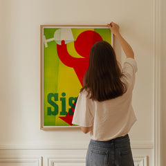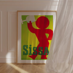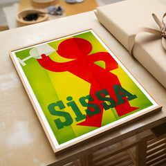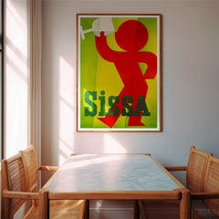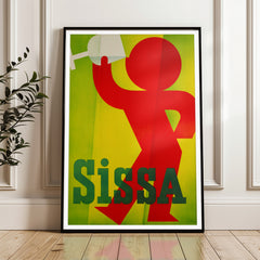 Add a touch of charm and nostalgia to your decor with this vintage Sissa poster, featuring a bold minimalist design. The art print showcases a striking red figure holding a wine glass against a vibrant green and yellow background, creating a captivating visual contrast that will enliven any space. This unique piece is perfect for kitchens, dining rooms, and living rooms. Our high-quality print is crafted on 250 gsm museum-quality paper, ensuring long-lasting colors and details. Available w...